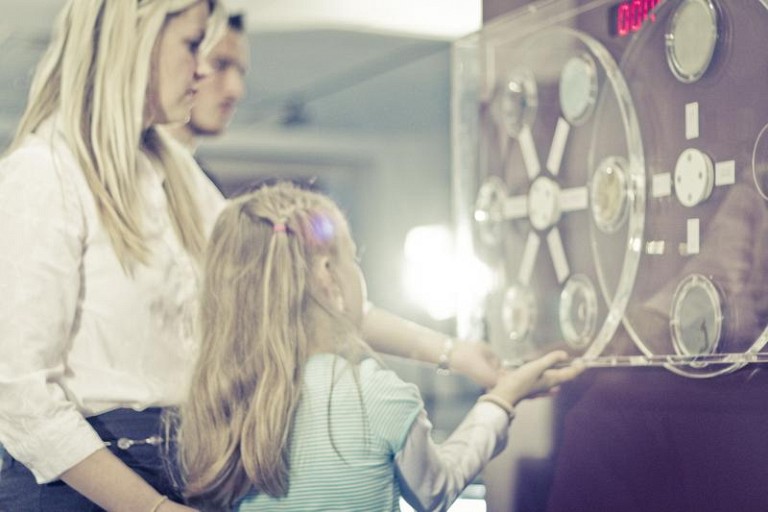 You can see the cloud chamber, an instrument which, similar to the Geiger-Mueller tube and dosimeters, allows us to detect ionizing radiation, which otherwise – much like radio waves – cannot be detected using our senses. You can also enjoy a hands-on demonstration of a radioactivity counter, which counts radioactive particles in various everyday items you hold in front of it. You can also select from various radiation shields which allow you to reduce the number of radioactive particles or completely stop the particles from reaching you.