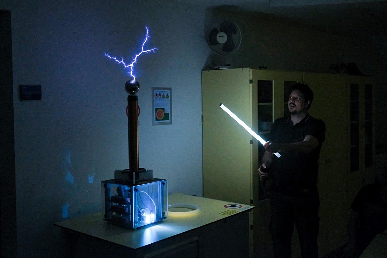 Experiments involving the Tesla coil are exciting to watch because we humans can feel the effects primarily through visual and hearing senses while not feeling the electricity itself at all. These experiments are particularly interesting in terms of popularizing physics since their effects can be interpreted on various scientific levels.